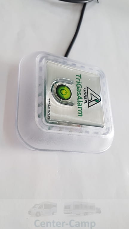 System wykrywania gazów, takich jak: tlenku węgla, gaz propan i butan. Może być podłączony do 12 woltów w przyczepie kempingowej lub samochodzie kempingowym. Wykrywa gazy w ciągu kilku sekund. 80 decybeli - syrena. Czujnik posiada sygnalizator świetlny w kolorach zielony i czerwony.