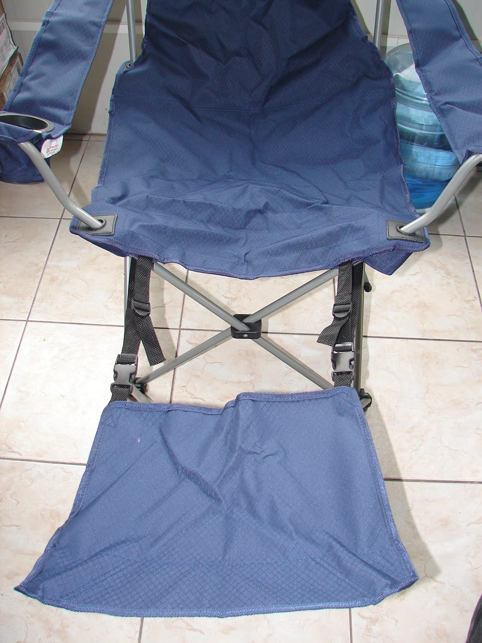 Campingowe krzesło składane z podporą pod nogi Relax Bazaar z podporą na nogi oraz podgłówkiem . Bardzo wygodne i wytrzymałe. Zajmuje mało miejsca podczas przechowywania. Kolor ciemny niebieski.