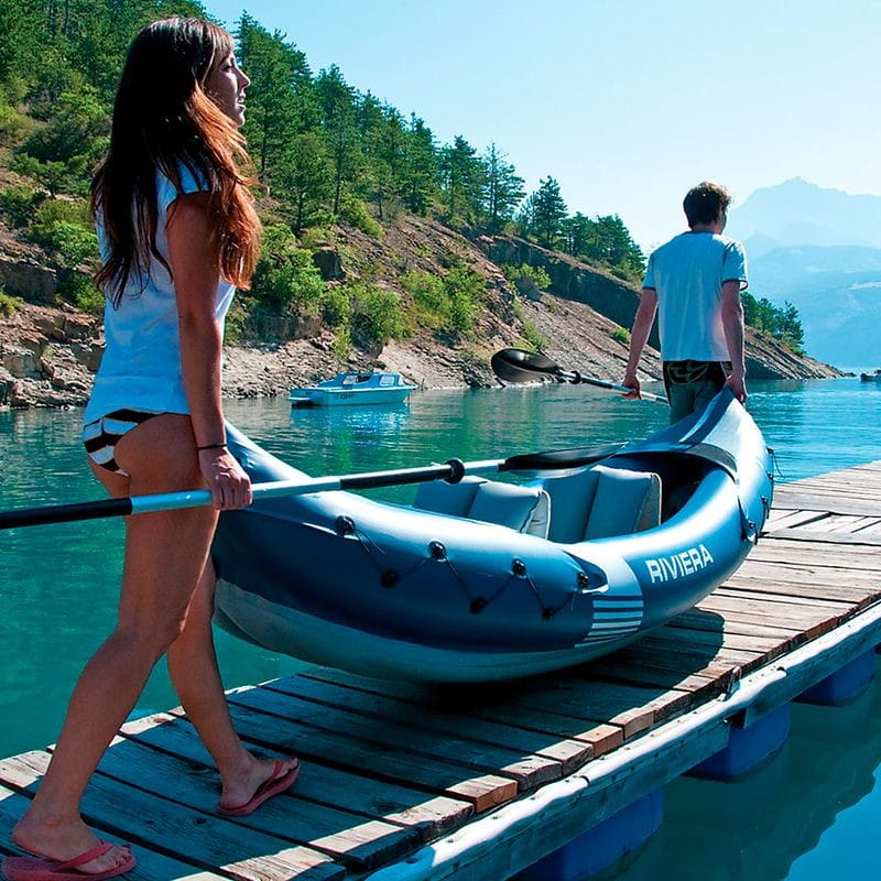 Jest zrobiona z trwałego i wytrzymałego PVC, posiada dwa wygodne siedzenia z regulowanymi oparciami, które można także całkowicie usunąć. Riviera posiada 5 niezależnie pompowanych komór oraz niezawodne zawory typu Boston, dzięki czemu zwiększone jest bezpieczeństwo użytkowania.