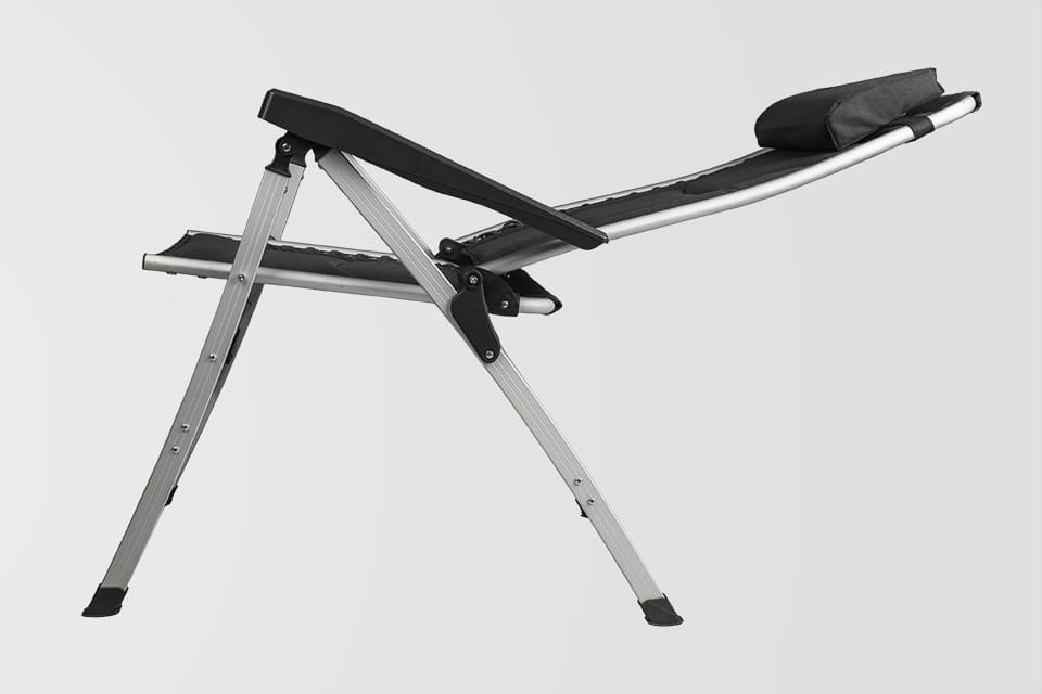 Komfortowe krzesło/fotel kempingowy ze zdejmowanym zagłówkiem , składany - stabilna, lekka aluminiowa konstrukcja, regulowanie 8-stopniowe.