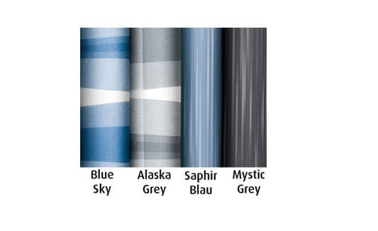 Kolor obudowy biały, kolor tkaniny Saphir Blau (niebieski)