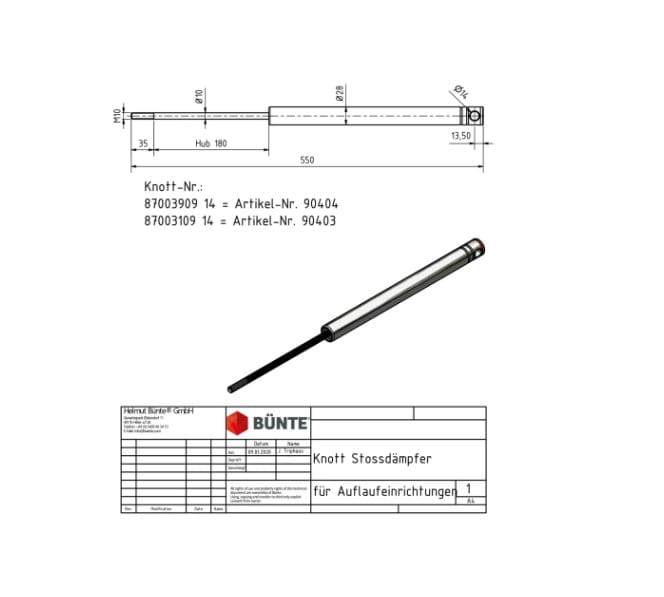 Amortyzator najazdowy do urządzenia najazdowego KNOTT KF27-B, długość 530 mm, otwór Ø 14 mm