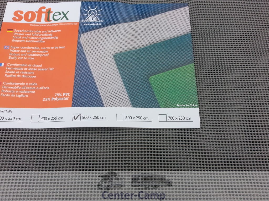 Podłoga wykładzina do przedsionka lub pod namiot renomowanej firmy Arisol. Podłoga wykonana jest z siatki oblanej gumą materiał 70% polipropylen włókna + 30% poliester. Niezwykle silna mata, produkt ten nadaje się do stałego rozłożenia. Umożliwia ziemi oddychać, miękka, anty-pleśniowa i trwała. Łatwa w utrzymaniu czystości nadaję się do mycia. Torba w zestawie. Wymiary 2,5x4m kolor szara