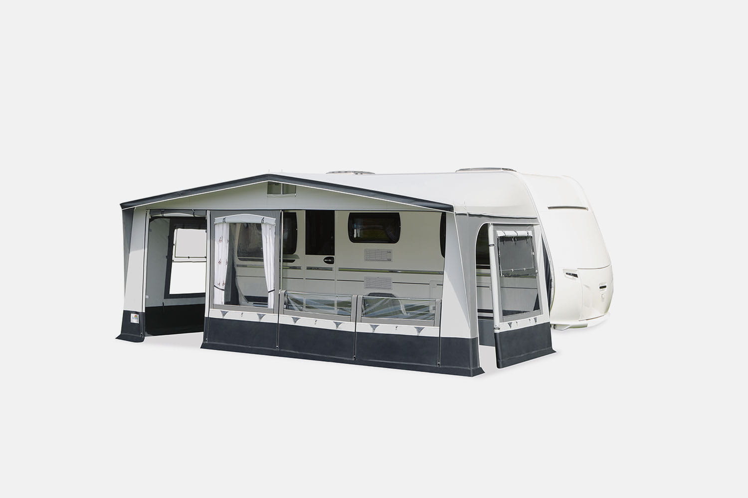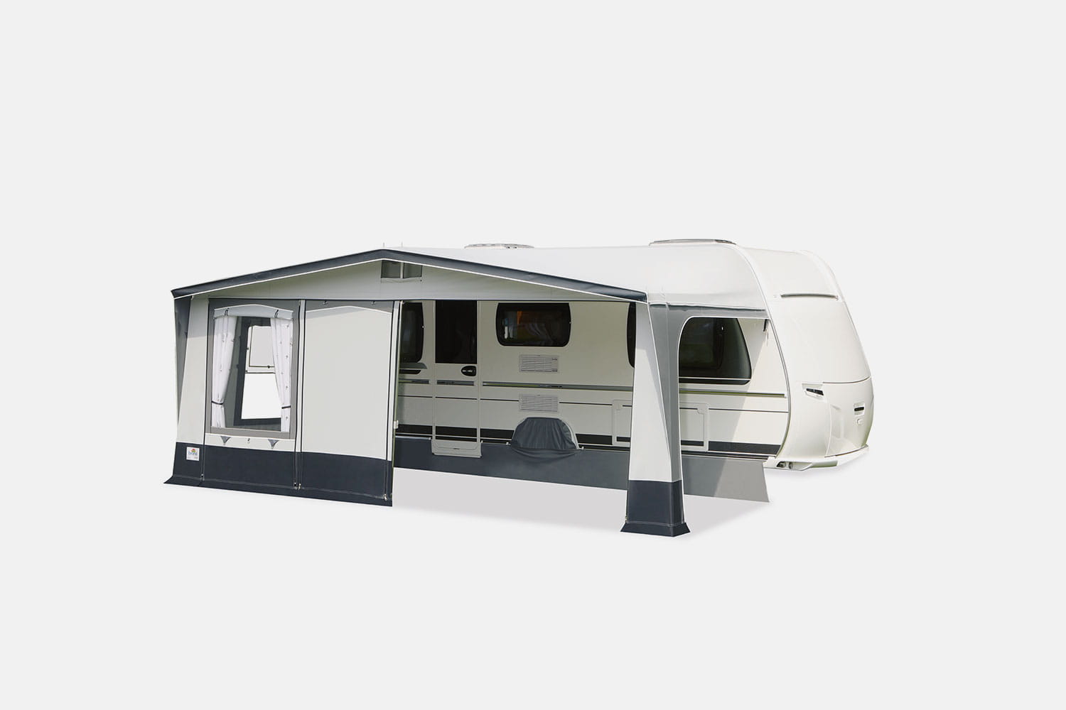 Nasi projektanci zastosowali w tym modelu przedsionka dach i ściany boczne z materiału PVC bardzo wytrzymałego, Przednia ścianka jest wykonana z oddychającej tkaniny TenCate. Ten model jest ciekawą alternatywą na kempingu w sezonie i przy pozostawieniu w długoterminowo. Dwa elementy ścianki czołowej są wzajemnie wymienne. Umożliwia to zmienną pozycję drzwiczek albo na lewej ścianie lub prawej. Wszystkie okna boczne są z zasłonami okiennymi i moskitierami wentylacyjnymi szyby boczne są wyposażone w dodatkowe ochraniacze przeciwdeszczowe. Stelaż stalowy 28 mm