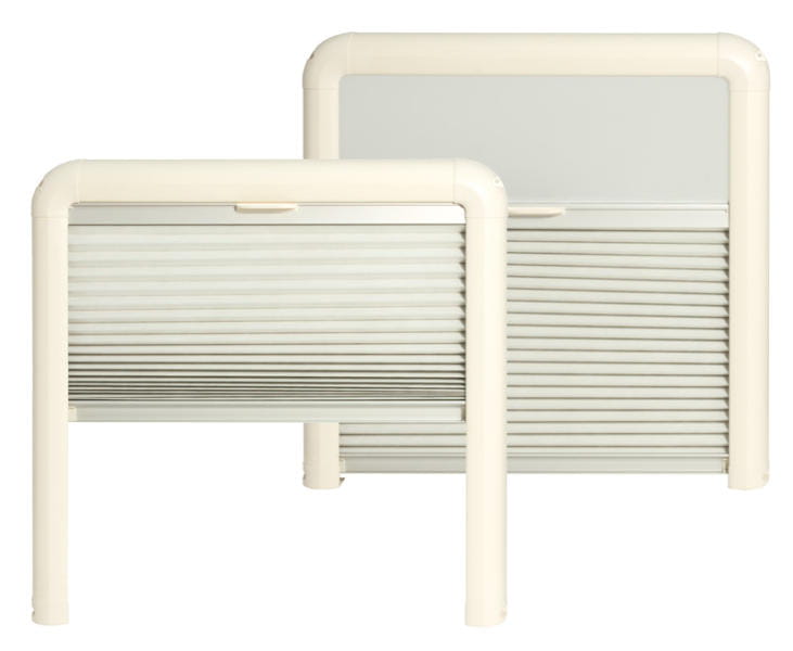 Elegancki wygląd moskitiery z plisami. Gęsty ekran muchowy. Obie rolety są regulowane. Dla wszystkich typów okien. Kolor kremowy. Obudowa tylko 4 cm