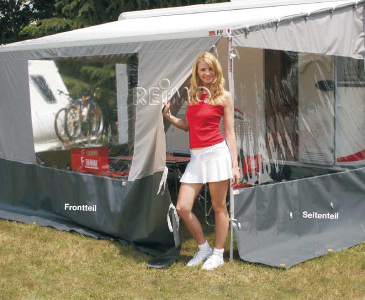 VW T4 T5 . Nadaje się do markiz od 3,00m do 5,50m. Wysokość montażu od 1,8 m do 2,0 m, przedłużenie 1,9 m. Górne mocowanie z dołączonymi klipsami na teleskopowym drążku naprężającym. Praktyczna ściana boczna z dużym przedłużeniem okna i podłogi. Wykonany z wodoodpornego, odpornego na promieniowanie UV winylu. Zaw. teleskopowy pręt krokwi i kołki