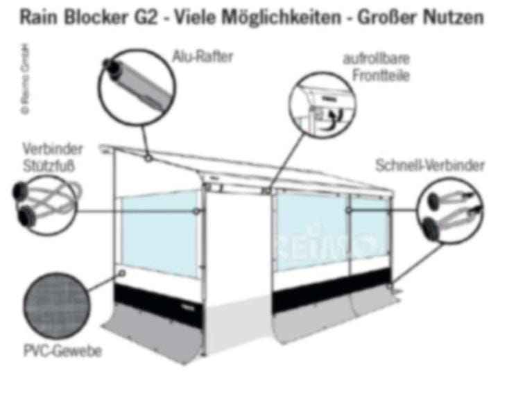 Ściana przednia RainSunBlocker G2 długość 100 cm. Wysokość 210 cm.