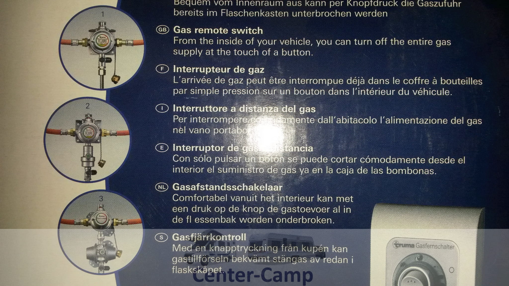 System TRUMA odcinający gaz z wewnątrz przyczepy