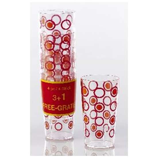 Kolorowe szklanki do napojów wykonane z nietłukącego poliwęglanu, idealne na kemping. W zestawie 4 szklanki koloru czerwonego.