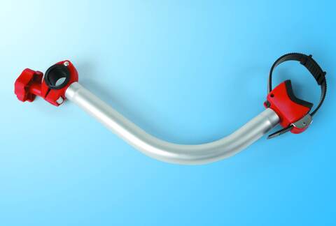 Sprzączki mocujące posiadają obejmę nie powodującą zarysowań, regulowaną w zakresię średnic od 25 mm do 80 mm, w zależności od potrzeb dla danego typu roweru i modelu bagażnika rowerowego. Kolor czerwony