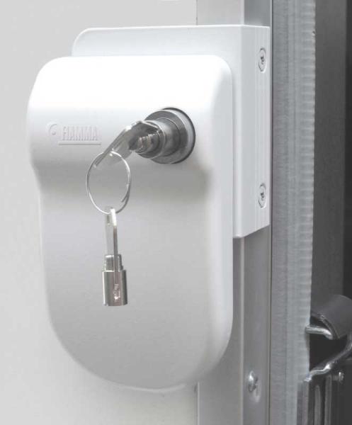 Blokada bezpieczeństwa na drzwi przyczepy. Zestaw zawiera blokadę Save Door. Umożliwia założenie blokady zabezpieczającą drzwi pojazdu kempingowego. System blokuje możliwość wyważenia drzwi. Montaż w framudze. Wykonanie z mocnego aluminium.