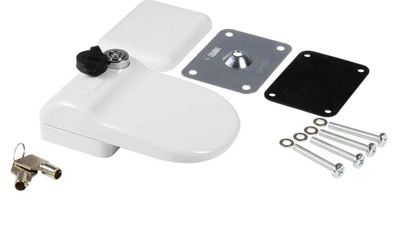 Blokada bezpieczeństwa na drzwi przyczepy. Zestaw zawiera blokadę Save Door. Umożliwia założenie blokady zabezpieczającą drzwi pojazdu kempingowego. System blokuje możliwość wyważenia drzwi. Montaż przez ścianę. Wykonanie z mocnego aluminium.