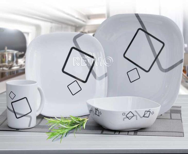 Zestaw Naczyń CUNEO 16 elementów dla 4 osób. Wykonane z melaminy wytrzymałe na stłuczenia odpryski oraz zarysowania.