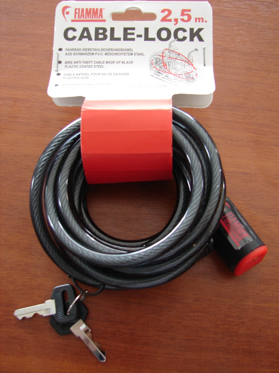 Zabezpieczenie rowerów Cabel-Lock. W zestawie dwa klucze.